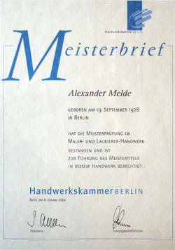 Der in Hakenfelde ans�ssige Malereibetrieb Melde ist weit �ber die Grenzen von Berlin-Spandau bekannt. Der Innungsbetrieb wird in vierter Generation gef�hrt.