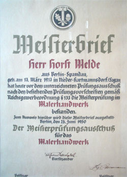 Malermeister Otto Melde (Urgro�vater) - Weiterf�hrung 1950 in Berlin-Hakenfelde
